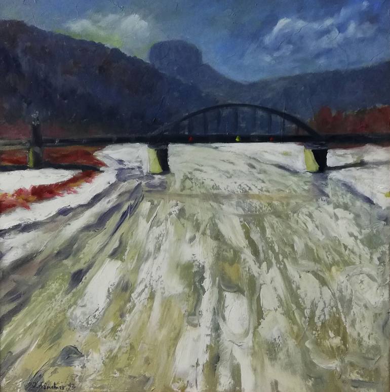a wintry view from Bad Schandau over the Elbe to Königstein Fortress