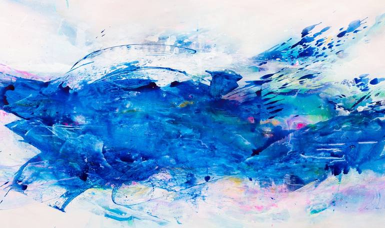 DESCRIPTION: Carrying Away is about getting rid of unwanted elements in one's self. Many layers of color, with hues of blue and white and off whites to be dominant. It is a very energetic artwork, full of movement, vibrant transparencies and interesting textures. MATERIALS: It is painted with high...