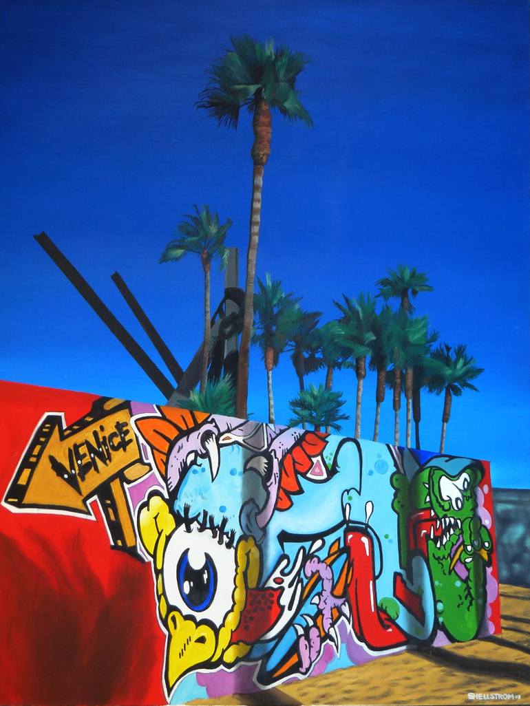 This famed Venice Beach graffiti wall is painted constantly. When this appeared I had to paint it myself knowing it would be painted over within hours. Perfect for a collector that enjoys Venice Beach.