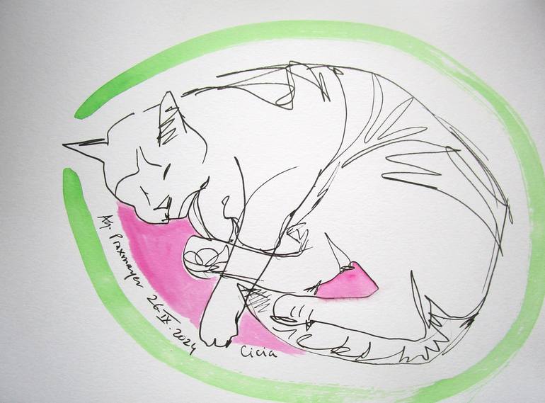 This cat was realized in ink, and watercolour on paper. The exact size of the page is 29,7x42cm. Enjoy !