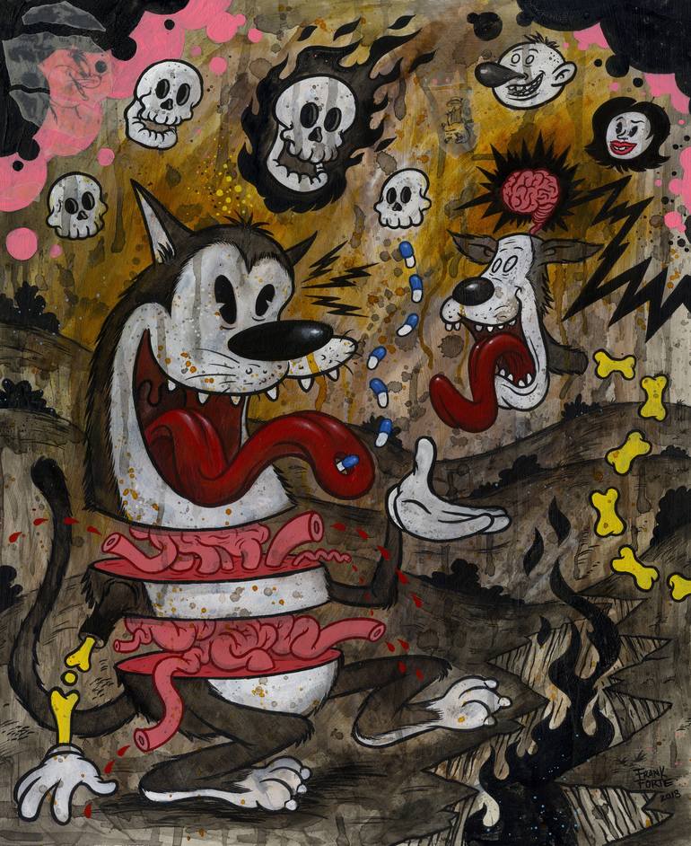 This painting was part of an exhibition at the La Luz de Jesus Gallery June 2018 Exhibition: June 1-July 1 Reception: Fri. June 1, 8-11 PM EXHIBITION CATALOGUE La Luz de Jesus Gallery is pleased to present “The Exploration of the Cartoon Myth” by artist Frank Forte. This will mark Frank’s second e...