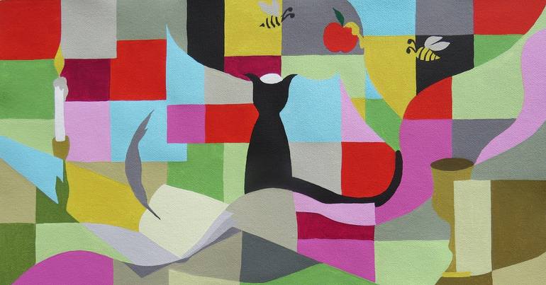 A cat wearing a typical Jewish hat that crowns the crown of its head is the subject of this painting. In addition, various elements of Jewish tradition such as an apple with honey, a lighted candle, a golden cup, a writing pen. This painting was presented in the exhibition "Brazil Without Borders", ...