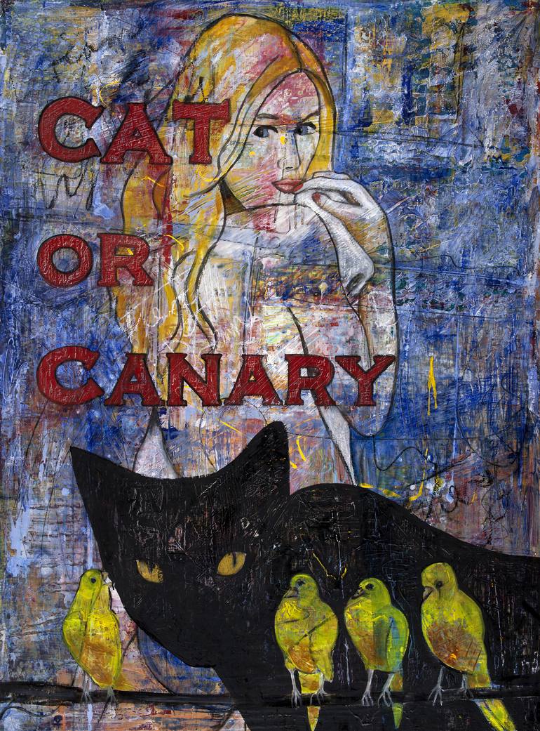 Mixed media on canvas with oil and enamel paint. All edges are painted for gallery wrap look. This piece is shipped unstretched rolled in a tube.
