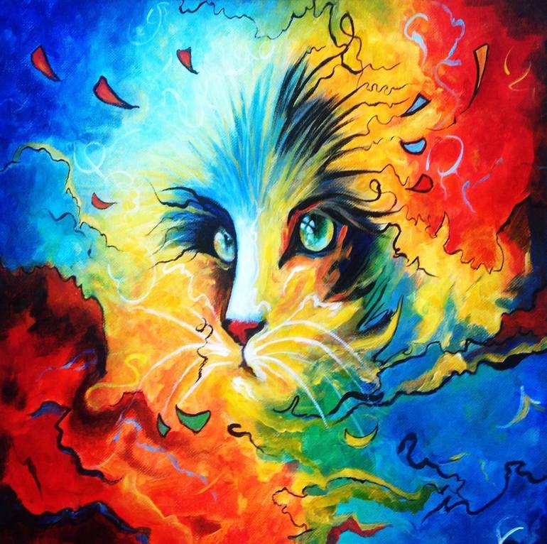 Introducing our vibrant Cat portrait, featuring bold colors and playful patterns that will add a touch of whimsy to any room. This piece captures the essence of a cat's curious and mischievous personality, making it a perfect addition to any cat lover's collection. Expertly crafted with high-quality...