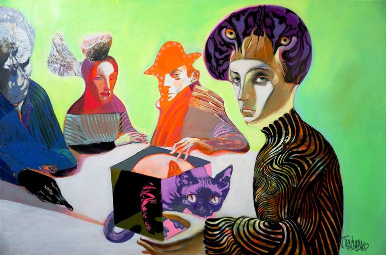 Victor Tkachenko, lives in Toronto, Canada. Victor received professional art training beginning at age ten and was one of few graduates to complete the extensive and rigorous program from the well-renowned Art School in Krivoy Rog, Ukraine. Working primarily with acrylic on board Victor displays a mastery of line and colour through purposeful brushwork and a palette dominated by rich earth tones thickly applied to the ground. The physicality of his work is enhanced with accents of ink and, intermittently, the addition of industrial materials such as varnish and plaster. Throughout the various stages of his work, Victor’s figurative forms are drafted with elongated lines, exaggerated features and geometric patterns. While early paintings are recognizable for their use of solid line and bold colour that refer to Byzantine mosaic work or stained glass, his oeuvre is grounded, broadly, in symbolism and expressionism. Dominating his art are planes of soft light which intersect and overlap, objects and figures emerge from a dreamlike atmosphere of harmonious colour while emotion and meaning are conveyed masterfully through bold pattern and vivid line. Victor’s work can be found at galleries and private collections all over the world.