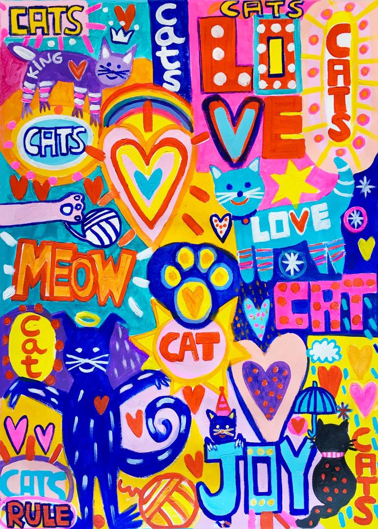 Cats Rule! Love & Cats, for Cats Lovers :) Painted sides, ready to hang! Signed on the back