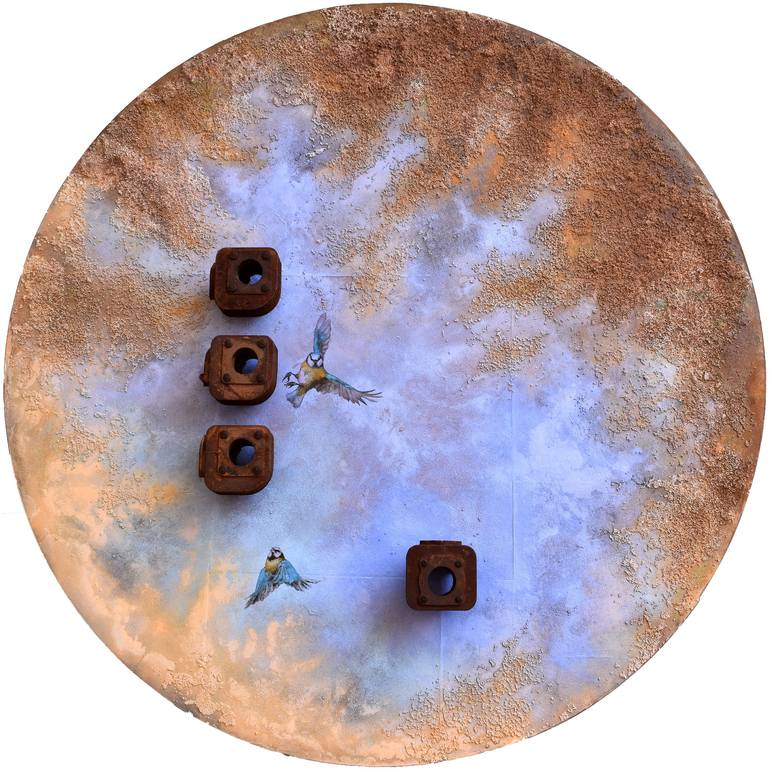 For Milena Nicosia, art is breath, narrative, eternity. Born in Sicily, she has been painting since she was 4 years old and has never lost the enthusiasm for it. Her studies at the Academy of Fine Arts in Florence were rich in stimuli: Alchemy, Aesthetics, Philosophy, Symbology, and Art History left her with an endless desire for experimentation. Her production has evolved hand in hand with her lived experience. There was a period dominated by the warmth of "beds," the passion of her twenties mixed with melancholy, longing, and "absences." Her voids contained presences, smells, and suggestions. Since 2005, warmth and emotions in her works have been replaced by coldness and austerity, marked by traces of "clothes stripped off the body," essences in prints that preserve a form no longer there. The color was that of an archaeological or black-and-white photographic relic. Her perception of things is intimate and sacred; the material and immaterial imprints life leaves behind are her great source of inspiration. Her works, feminine and mysterious, hold stories and life accounts even when they appear abstract or metaphysical. Her color is not realistic but emotional. Her painting style involves removing, carving, or corroding the surface, both technically and philosophically. Much like a sculptor or archaeologist, she sees the image on the surface, letting herself be carried away and inspired. The works created from 2016 to today are tied to the poetry of "contemporary ruins," narrating lives lived through the mute language of nostalgia, spaces far from any logic where the mind is the only guide. Using art, she constructs a personal inner signage in the incomprehensible ocean of existence, reconciling everything with the idea of lost beauty, her ideal refuge. She often uses the dialoguing power of objects and the fragment's power to open doors to storytelling, sometimes imaginative but hinting at premonitions and omens. Her fragments and debris symbolize fears but also rebellion and resilience. From 2020 onwards, after metabolizing the experience of Covid that marked everyone’s lives with its unexpected absurdity, Milena poured all her feelings into art, freeing her voice through material, form, sign, and vision. She used art to reconstruct a personal path through lived and projected feelings, emotions, and fears, bringing to life the “Nests.