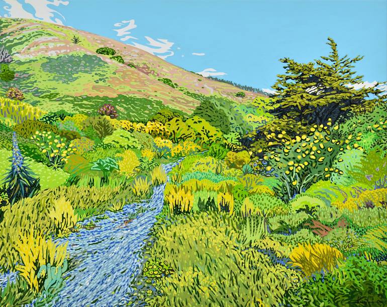 Alex Nizovsky – 'Cavallo Point Valley' (2024) Painting from 'Post Pop Landscapes' Series. Style: Pop Art / Abstracted Landscape. Inspired by David Hockney art. Original Contemporary Art by Alex Nizovsky, Sausalito, California. Size: 30" x 24" x 3/4" (76 x 61 x 2 cm). Media: Acrylic on Canvas. Or...