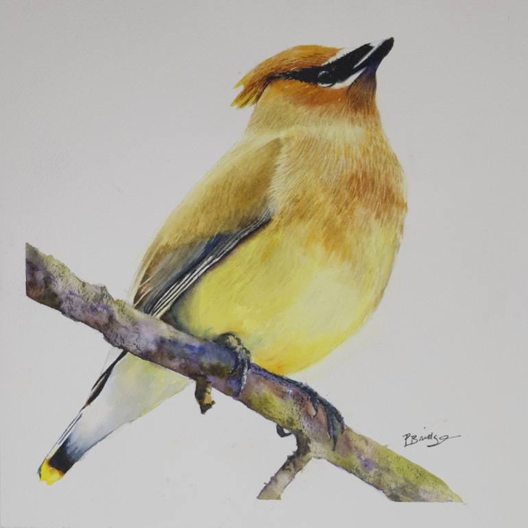 Introducing the Cedar Waxwing Bird in Watercolor 10x10, a beautiful addition to any bird lover's collection. This stunning piece captures the essence of this common North American bird, with its pale yellow belly and matching tail tip. The black mask edged in white adds a touch of mystery to this cr...