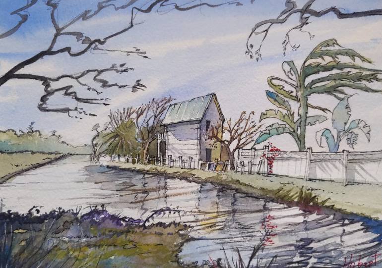 Bonjour! My name is Hubert. I came to the U.S from a small, rural village in France 17 years ago. I initially lived in Miami, but moved around the state and eventually settled in Celebration, Florida. I love living here, and being inspired by the local beauty and architecture. I have always loved drawing, but my job has taken me away from this passion. A year ago, on my birthday my daughter gave me a box of watercolor tubes. Et Voila! I paint every single piece by hand, so each piece is a unique original. They are inspired by my day-to-day life here in Florida. I am so happy to be able to share a bit of my life with all of you with my paintings. What I love about watercolor is its honesty. Every stroke remains as clear, and transparent as the beautiful waters of Florida. Hubert