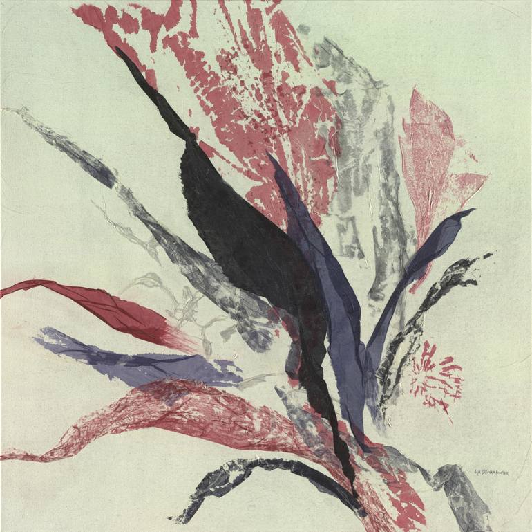 A "celebration" of Japanese handmade Washi paper, hand painted and printed with acrylics. I'm not sure if this painting reminds me more of a party popper or, a bird-of-paradise flower. Either way I was compelled to use these particular sections of "Washi" in these colors. Sometimes it just works ou...