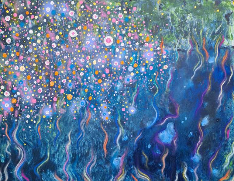 Spring and the universe collide in a cosmic dance—colors bursting, energy flowing, and life awakening. Celestial Bloom is all about that magical moment when everything shifts, and new beginnings take shape. A mix of deep blues, dreamy swirls, and glowing orbs, this piece feels like a universe in blo...