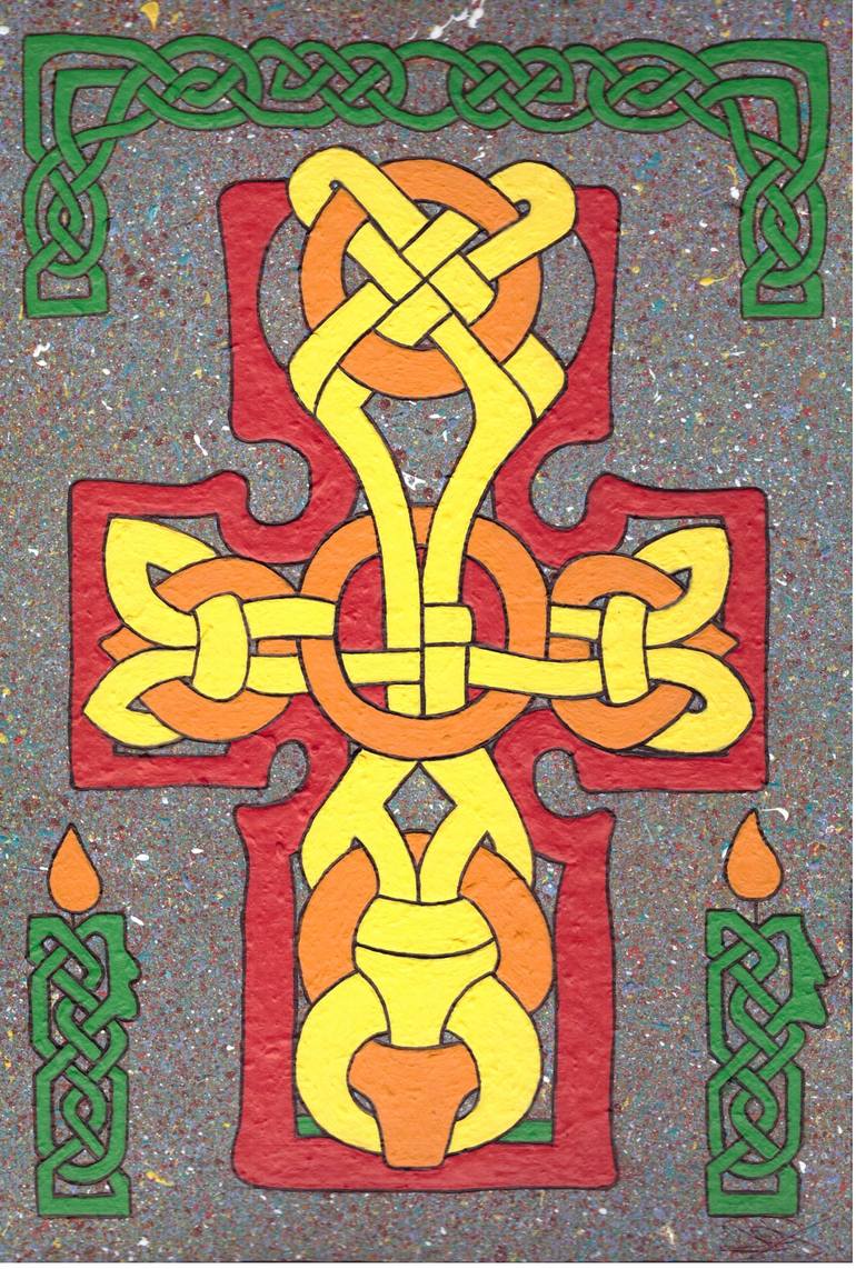 This painting was created during a phase when I was experimenting with traditional imagery styles and trying to combine them to create a new twist. I like the vibrancy of the colours combining with the interlacing of the knotwork to create a beautiful image.