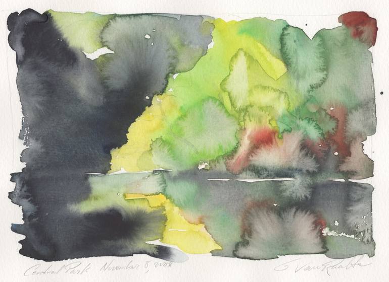 I go around New York painting small sketches of city scenes. This one is of the autumn trees at the Pond in Central Park. Painted on November 8, 2008.