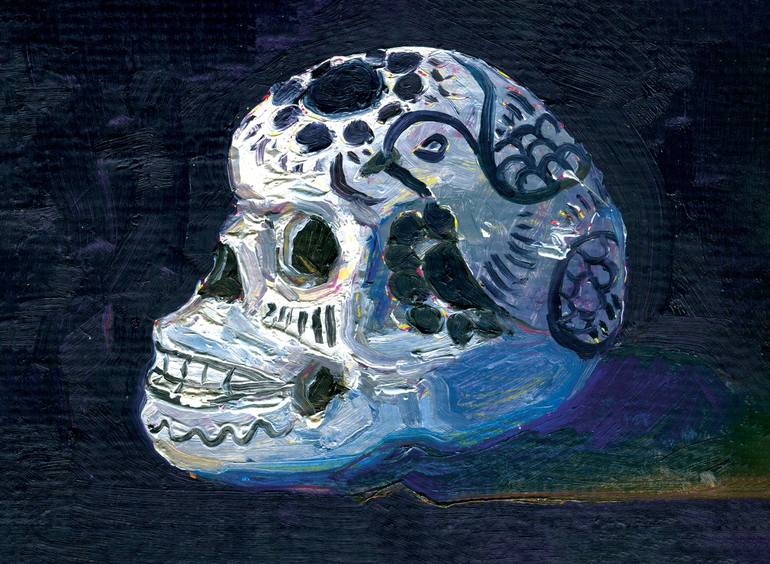 Oil on stretched burlap. Inspired by Day of the Death ceramic skull.