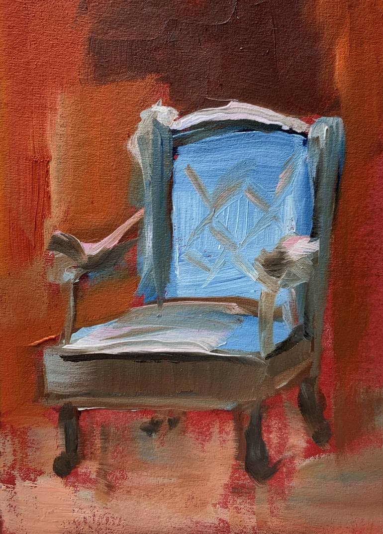 Chair. Interior still life. Original impasto, Palette knife oil painting. This is one of a kind original oil painting. ►100% handmade oil painting on cardboard ►Dimensions: 7 x 5 inch.(unframed) 18 x 13cm. ►To see the details of the painting; please click "ZOOM" to enlarge the images. ►It is made i...