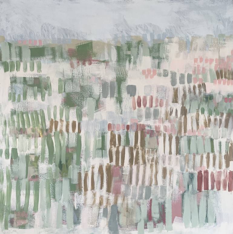 North Norfolk coastal meadow in mid-tone pastel shades; a work full of gentle warmth and visual interest.