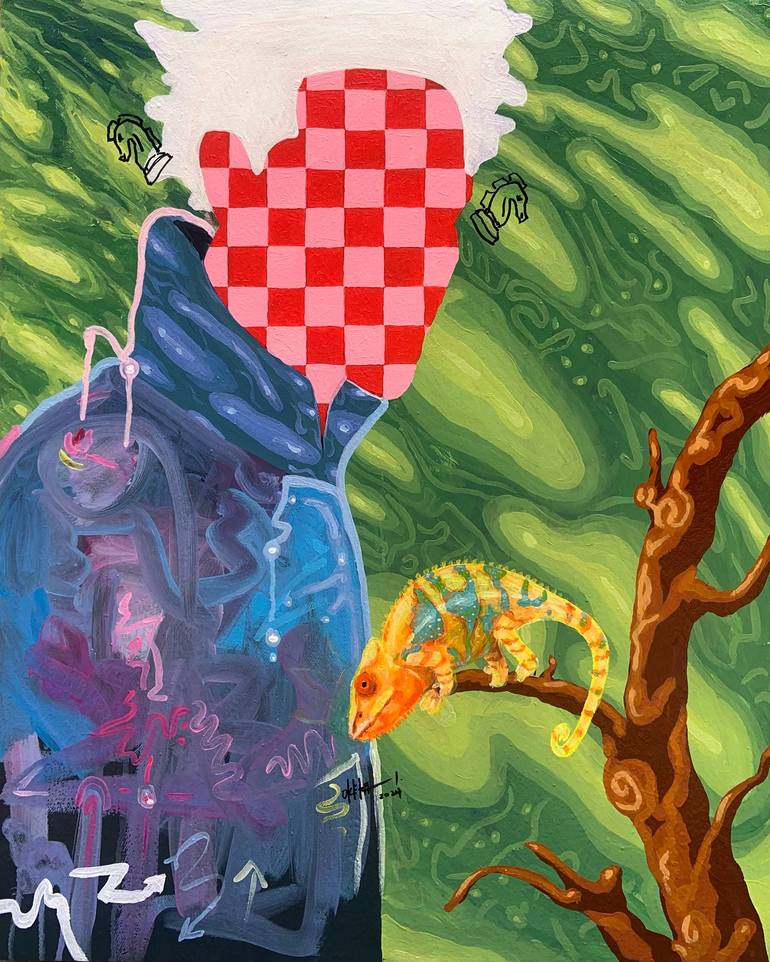 Oketa Irobo is a contemporary Nigerian artist whose passion for art was ignited by street graffiti and comics. Having earned his art degree from Lagos State Polytechnic, he has since established a career as an artist in Lagos, Nigeria. Oketa’s work is a distinctive blend of figure paintings, Cubism, surrealism and Realism. His signature style features bold-eyed subjects adorned with chess motifs on the skin and chess pieces around the ears. Through his art, he delves into the complexities of the human experience, exploring emotions, thoughts, and desires with raw intensity. His canvases serve as visual reflections of society, inviting viewers to contemplate the interplay between the individual and the collective. Inspired by the strategic nature of chess, Oketa draws parallels between the game and life itself showing the obvious similarities. His works encourages viewers to consider their own life as a series of strategic moves, and the choices we take plays vital roles in shaping who we are and who we become. In his own words, "My art is a visual dialogue about the human condition; It's about the choices we make, the history we make from the choices and the unerasable mark these choices leaves on us and the world."