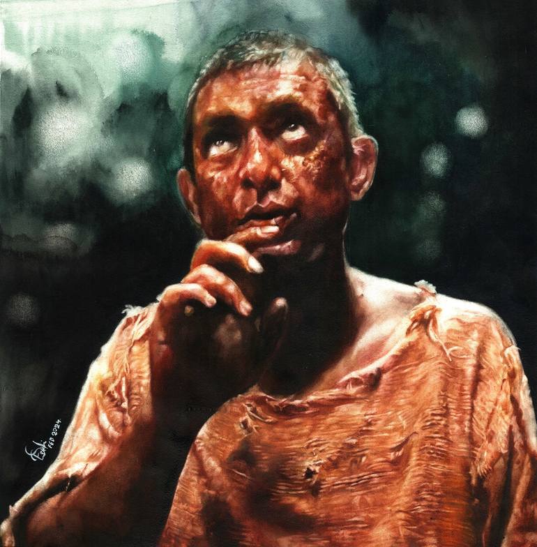 Media: Watercolor Size: 20"x20" inch. Duration of Painting: 78 Hours. The mysterious mute prisoner in a cell that has been locked for decades. How did he get in there. Is available in OTT platform Hoichoi for watching. This series had me mesmerized.
