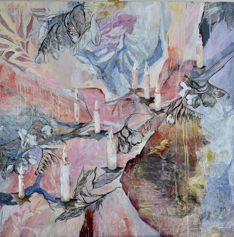 The beautiful tradition of lighting candles for Chanukah creates a festival mood. Painting is framed in a black wooden floater frame that can be replaced if you wish so. The painting arrives ready to hang.