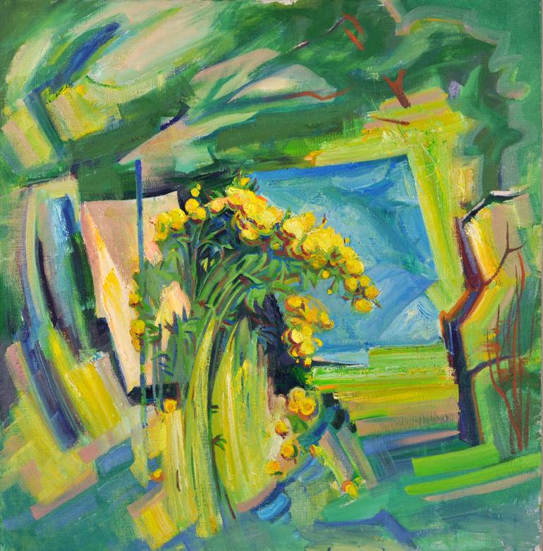 Painting from the series "Summer house sketches ". Made in a unique technique. It's a mixture of figurative and abstract. Colourful and bright original painting