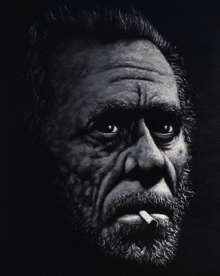Charles Bukowski Oil on Canvas 40 W x 50 H x 2 D cm Signed on back