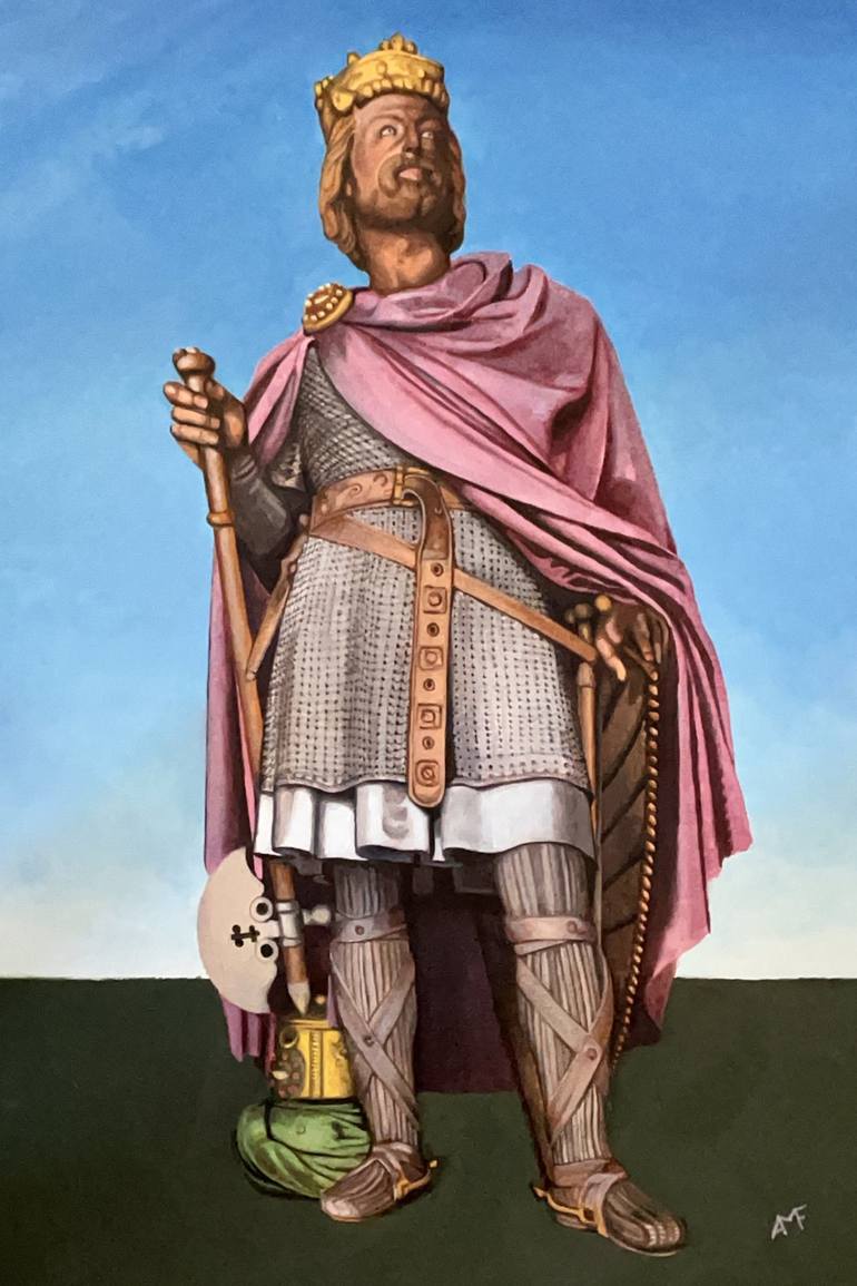 Full-length portrait of Charles Martel. Born around 688 in Andenne near Namur in Belgium and died on October 22, 741 in Quierzy, he is a statesman and Frankish military leader who, as duke of the Franks and mayor of the palace, ruled Francia from 718 to his death. His main military achievement was t...