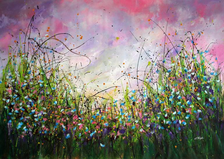 ''Charm And Passion'' is an original floral landscape series created with high quality acrylic paints on canvas. Each piece of the series is a unique abstract snapshot at nature made with palette knives and brushes. I have used energetic and free flowing brush strokes combined with a shower of dripp...