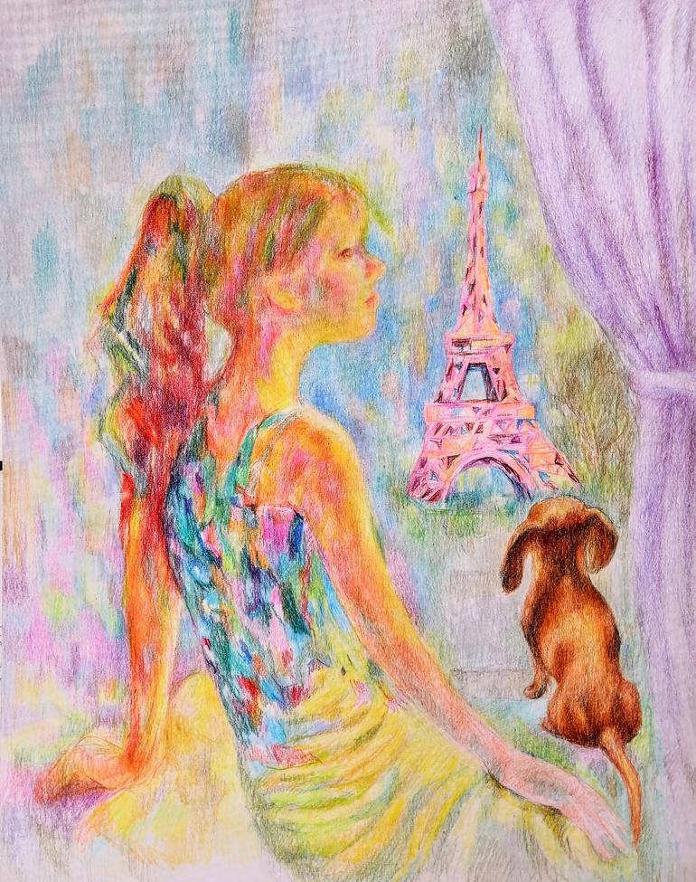 In this piece, I've captured a young woman and her loyal dog, both enchanted by the ethereal glow of a Paris sunset. Using colored pencils, I melded impressionist strokes with fine art detail to evoke a sense of fleeting beauty and wistful longing. This artwork isn't just about the allure of Paris, ...