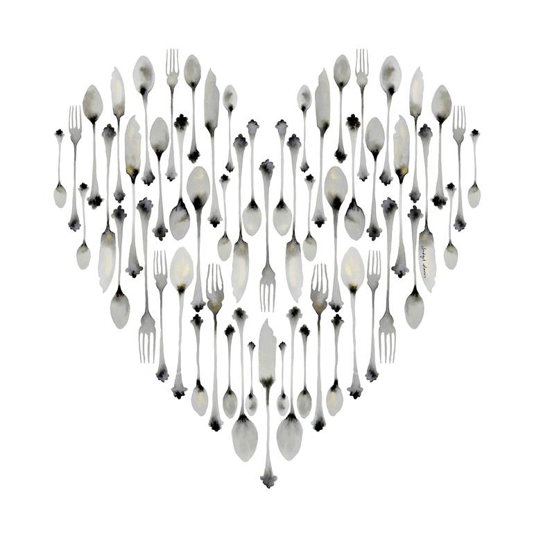 Where culinary passion meets romance – 'Chef’s Amour' celebrates love through my silver flatware designs and the 'heart' of cooking. Open edition print to gift to the ones that you love!