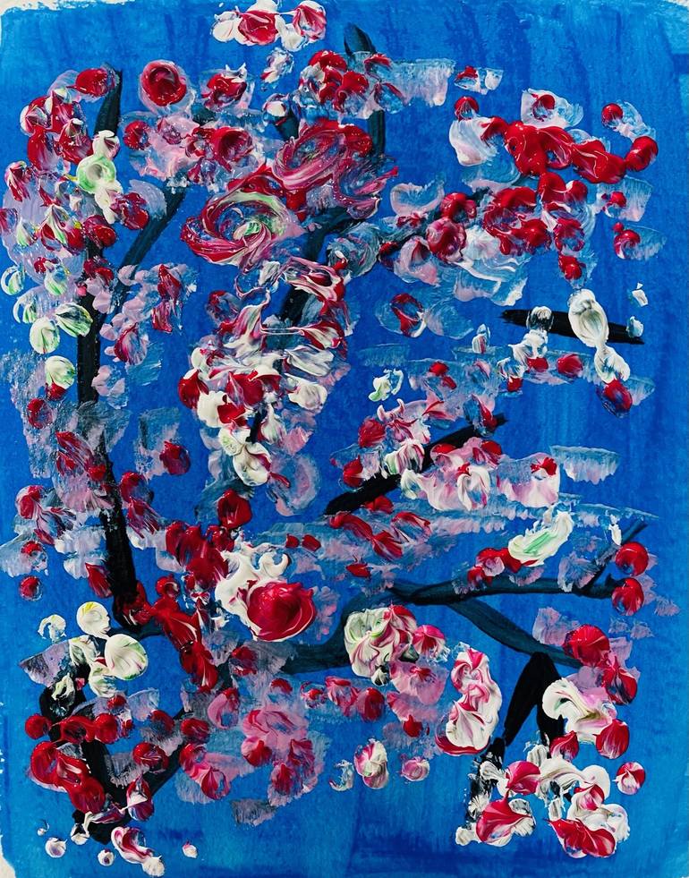 Inspired by the Japanese masters, this watercolour and gouaché image in cherry blossom is painted in the style I'm developing merging cultural ideas, colours and techniques. I hope it adds colour to the viewer's life and also a sense of preciousness of the world we live in and experience. It is pain...
