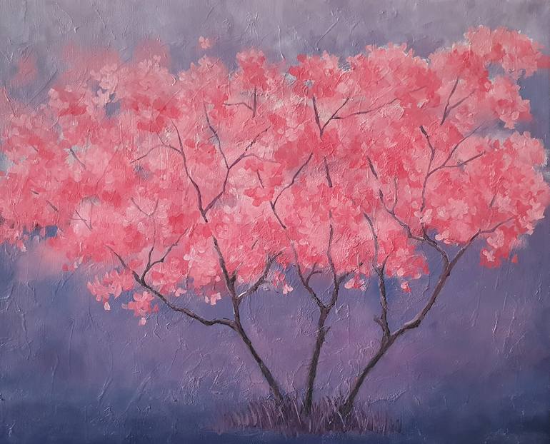 Cherry tree in bloom. Nature is an endless source of inspiration, especially in the springtime when green leaves come, and trees are covered with flowers and painted in different colors. The blooming cherry tree is tender and touching and speaks to us about love. I advise this painting for the livin...