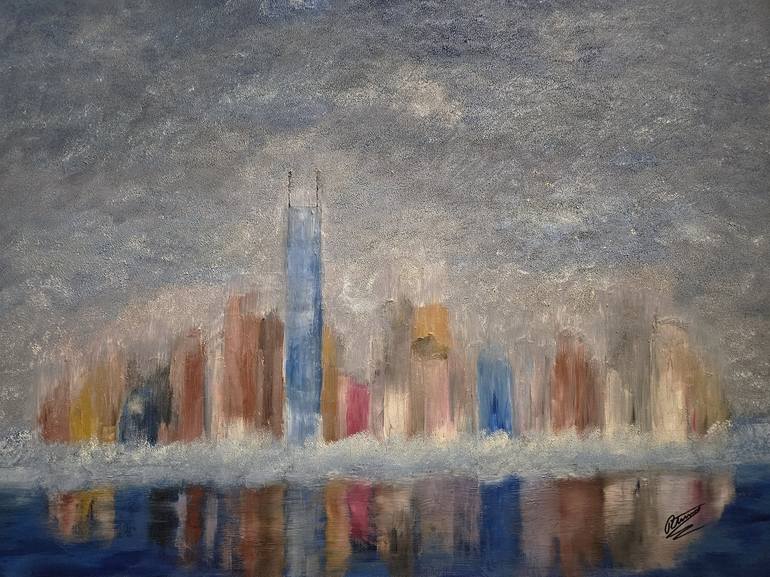 My abstract Chicago cityscape artwork is an oil painting that captures the essence of the city's skyline. The vibrant colors blend together to create a dynamic representation of the iconic buildings and structures, emphasizing the energy and movement of urban life. The brush strokes convey a sense o...