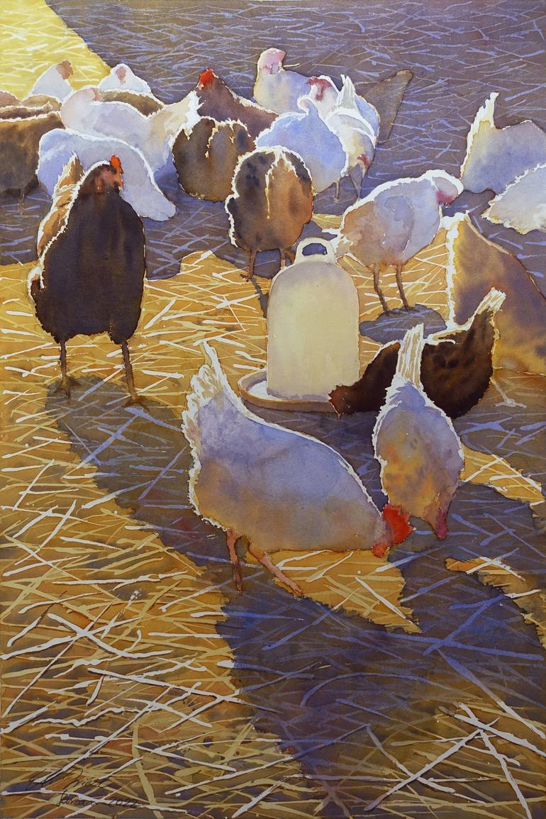 There is this chicken farm close by where I live where the chickens can run outside and live a natural life. Whenever I pass by I can't resist to stop and watch them for a while. On this day there was a beautiful light comming from the back lightening up the vivid bustling, a scene I had to capture....