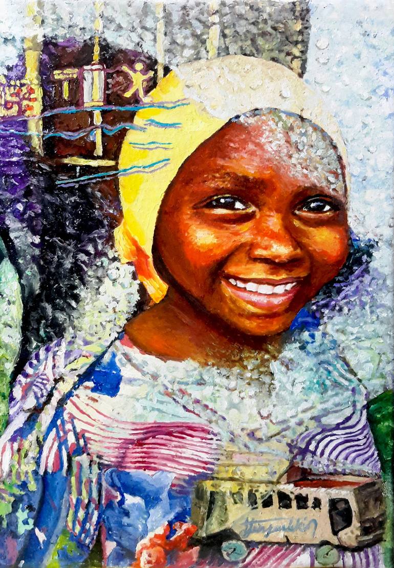 In Childish Joy, the artist beautifully captures the vibrant spirit, resilience, and innocent happiness of African children. Drawing inspiration from his own childhood memories—like toy cardboard buses and playful drawings—he bridges the personal and the universal experiences of youth. The artwork’s...