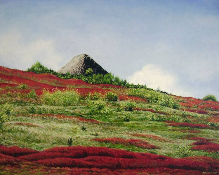 Vivienda utilizada por los indígenas que habitan y cultivan los páramos de la provincia de Cotopaxi-Ecuador. - Oil on a canvas stretcher. 15.7" H x 19.7" W x 1.1" D - Shipped flat . - Unframed. - Signed on front.