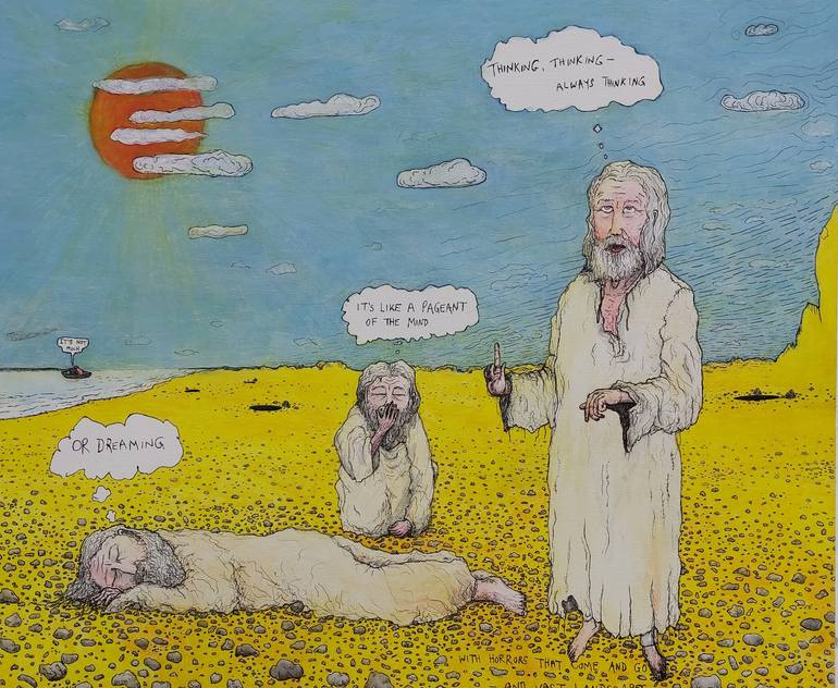 This image came out of listening to religious music as a starting point, and from a combination of a sense of isolation and an increasing interest in geological time! We start from dust and return to dust. The three poses of the Christ-like figure, musing on different thoughts, I guess gives the ima...