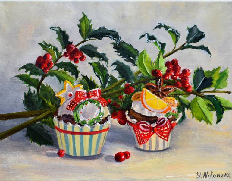 Original oil painting “Christmas Vibes” by Yulia Nikonova. Oil on canvas. Size: 14 x 11 in.