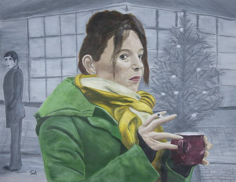 This is an acrylic painting from 2020 that was inspired by a visit to Hamburg in December 2019. Paper: medium thick paper for acrylic painting. Sheet: 65.0 W x 50.0 H cm