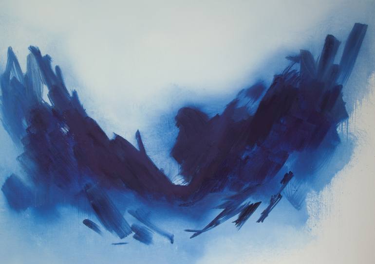 Expressive piece inspired by the sky and its sweeping, constantly changing cloud formations. Colour note: The blues all come from the same pigment (Pthalocyanine Blue) and range in colour from dusky baby blues to rich deep blues similar to RAL* 5017 (Verkehrsblau) and RAL 5010 (Enzianblau). The dar...