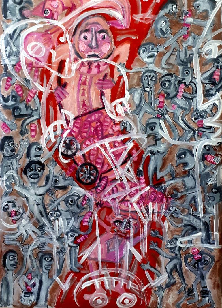"Circuses", 50/70, x/m. Tanya Turanova (Vasilenko), 2023, Vanadzor. An original avant-garde work. There is a multi-layered figurativeness in the author's technique. A reference to the famous phrase "Bread and circuses". The painting "Circuses" has a "pair" - "Bread". You can buy two paintings both ...