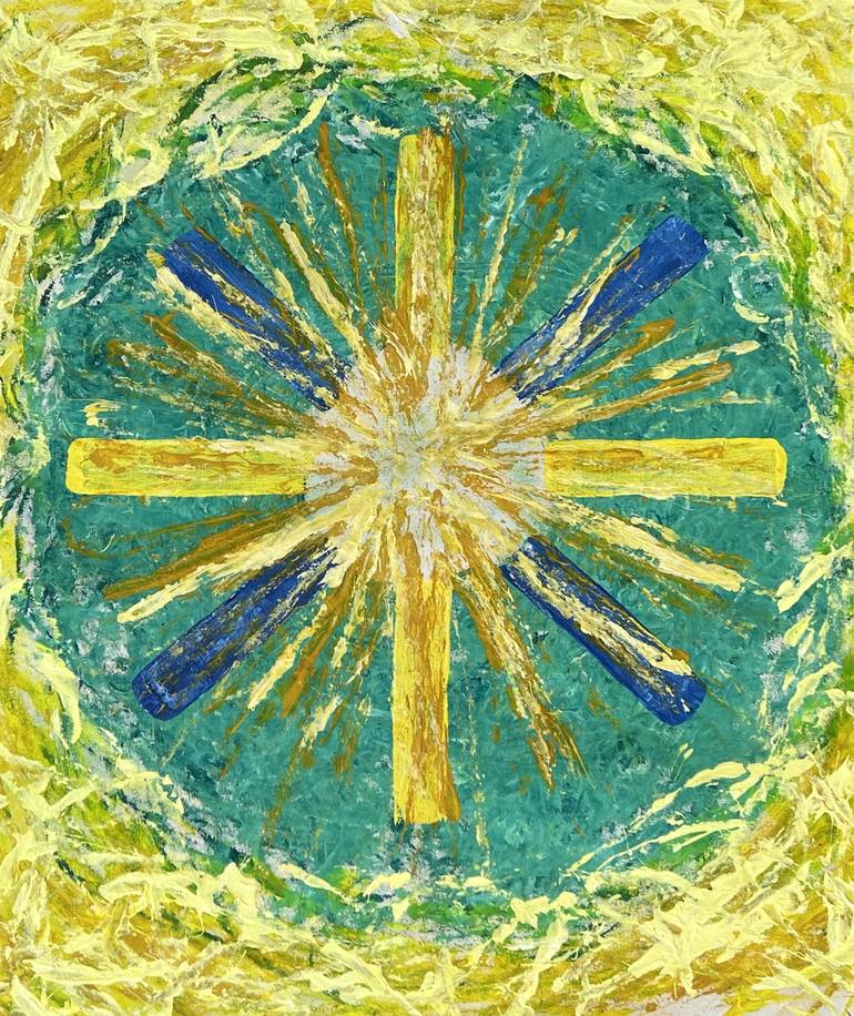 My body movement on the canvas. My rotational direction on the canvas uses multiple pips in paint to mix colors and apply it to the canvas. I was thinking of the circles or black spots made by Robert Rauschenburg. I take this highly joyful and colorful version of my rollerblade painting technique ...