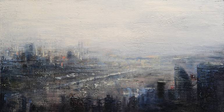 Original textured cityscape. It was painted in multiple layers with palette knife and brushes. * The artwork is signed on the back and includes a Certificate of Authenticity. * The painting is done on board using top quality oil paints and materials. * It is ready to hang on the wall. The edges hav...