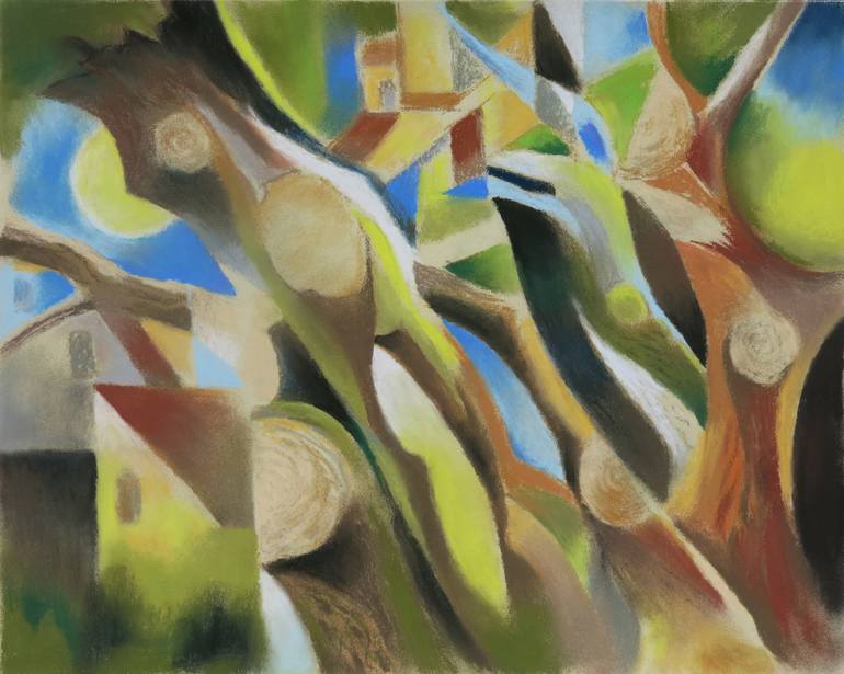 The simplification and further development of the motif of nature vs man. Chalk pastel on textured fine art paper.