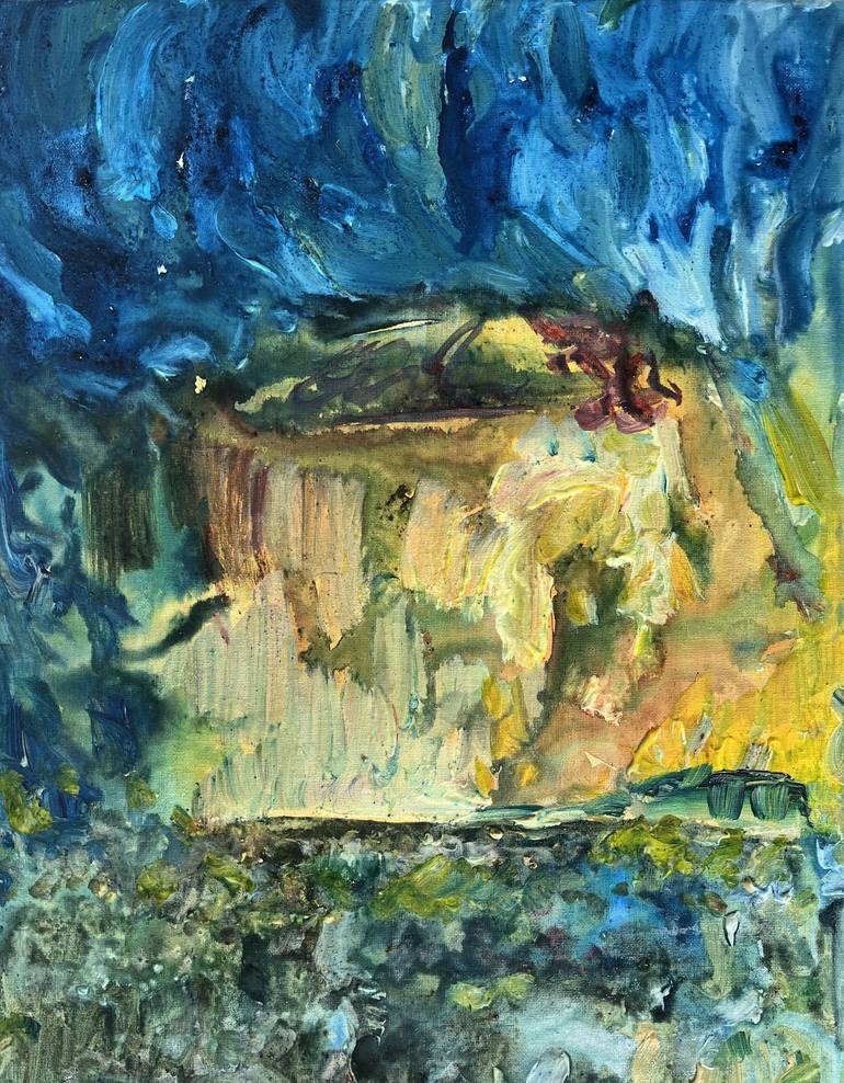 Artist's Statement: Evie is a painter engaged with contemporary concerns of 'scape' - terrestrial and galactic - and the increasing comprehension of the cosmos, combining indexical and erasive brushwork to produce ambiguous, sensual works that evoke the mystery of earth and unknowable places. The works hark back to romantic and expressive painting whilst leaning forward into the advancements of global mapping and space exploration.