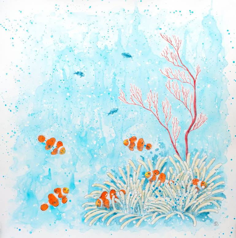 This painting is a part of the Aquatic Life Collection. This collection has been inspired mainly by the Red Sea. I love snorkeling or walking in shallow water watching fish and small sea animals. All the paintings are created using acrylic on heavy-weight paper (400gsm) in watercolor style. I bel...
