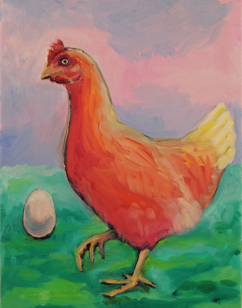 Painting is my passion and work, i could not do anything else. I love animals. Chickens are very interesting. Primordial animals, mysterious and little monsters, but also clever and curious and affective.