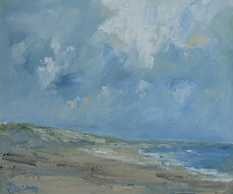 John Halliday's love of the coastline and the rugged countryside is evident in his paintings. The artist, who resides in the United Kingdom, aims to capture an impression or a feeling in his landscapes and seascapes, as represented by dramatic skies and weather. Halliday feels that by using fewer brush strokes, his pieces convey more emotion. He creates using oils on canvas.