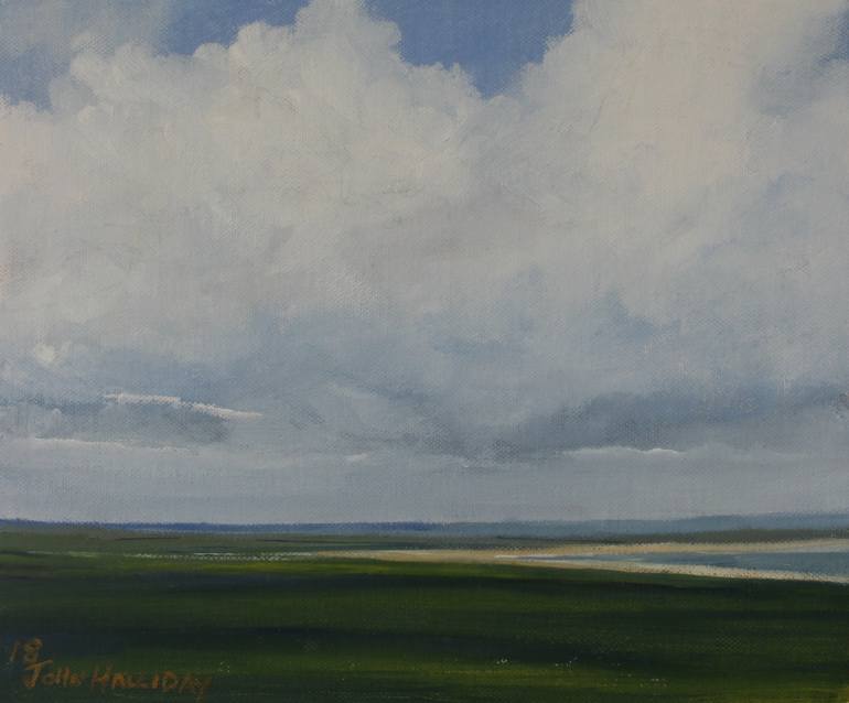 John Halliday's love of the coastline and the rugged countryside is evident in his paintings. The artist, who resides in the United Kingdom, aims to capture an impression or a feeling in his landscapes and seascapes, as represented by dramatic skies and weather. Halliday feels that by using fewer brush strokes, his pieces convey more emotion. He creates using oils on canvas.