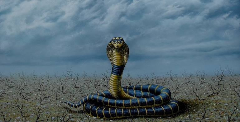 Oilpainting on wood with the theme: Cobra in the desert